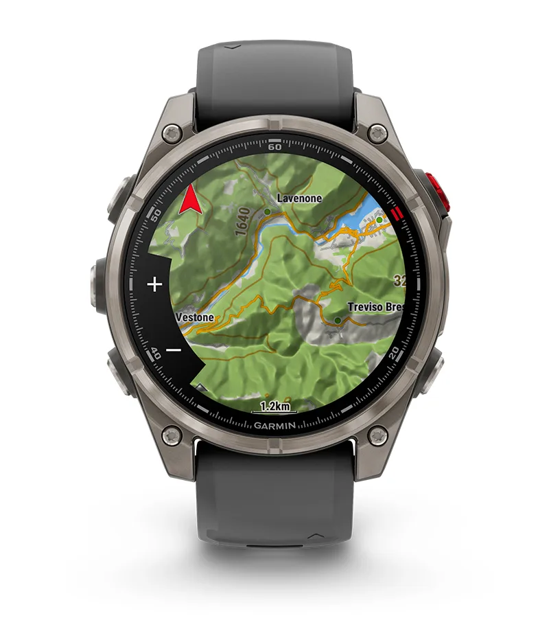 Das hochwertige Design der fēnix® 8 macht alles mit. Es ist für das Tauchen geeignet, hat wasserdichte Tasten, einen Sensorschutz aus Metall und ein helles 1,4-Zoll AMOLED Touchdisplay mit kratzfestem Sapphire Glass und einer Titan-Lünette. Die Smartwatch wurde nach US-Militärstandards im Hinblick auf thermische Leistung, Stoßfestigkeit und Wasserdichtigkeit getestet.